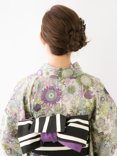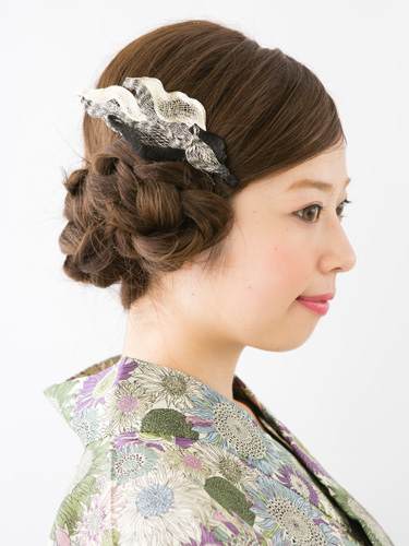 三つ編みをサイドにまとめて、クラシカルな浴衣ヘアに!