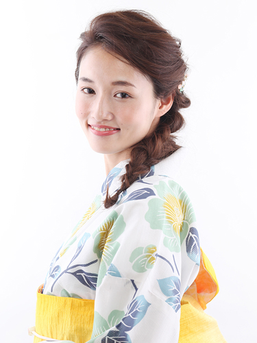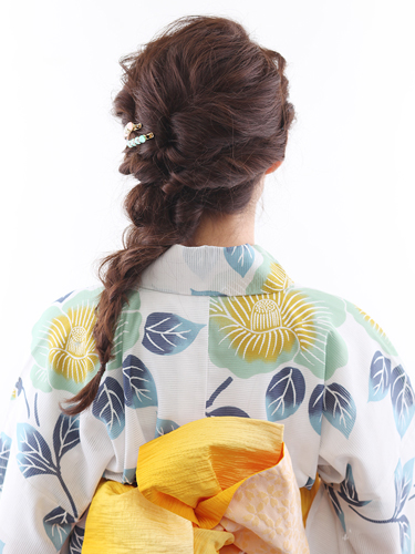 浴衣 1万6200円/蛍、帯5292円/夏もーで(ともにプランタン銀座本館5Fゆかたブティック)、帯締め7020円/撫松庵(マルイ)