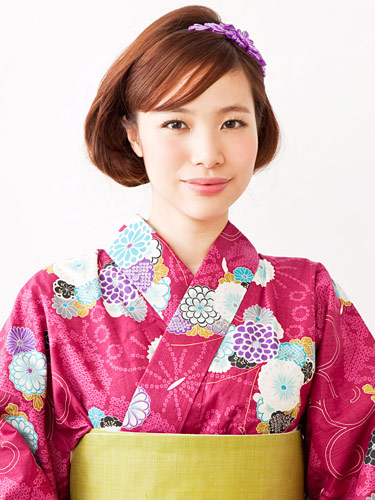 高貴とされる紫色は、いつもの和装アレンジをワンランク上の雰囲気に演出してくれます。可愛い印象の強い花柄モチーフも和を意識したコサージュタイプなら、長く使えることができてお得です。