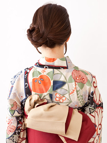 クラシカルな柄の浴衣に合わせたい、しっとり系アレンジ。カールや毛先を散らさずに、あえてスッキリと三つ編みだけでまとめています。低めの位置に三つ編みおだんごを作り、大人っぽい雰囲気に仕上げましょう。難しいテクニックは使っていないのに、エレガントさ溢れる仕上がりです。