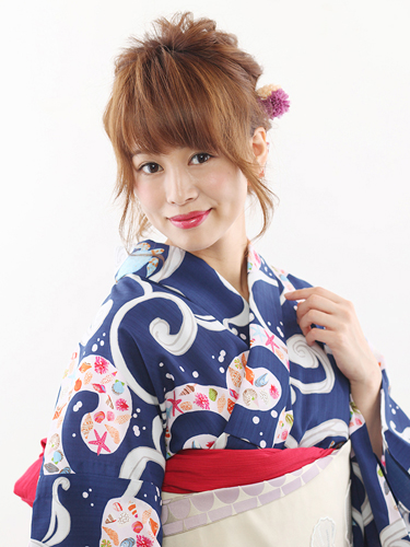 浴衣は襟にボリュームがあるので、それに負けないようヘアアレンジにも立体的なボリュームを持たせるのが、きれいに見せるポイント。トップ部分にストレートアイロンで“折り目”をつけて、ふんわり感を長時間キープ。
