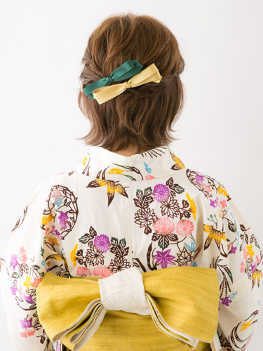 横長のリボンバレッタ。つややかな生地と、ゴールドの留め金が上品さを醸し出します。シンプルなデザインなので、浴衣はもちろん、学校やオフィスでも大活躍!