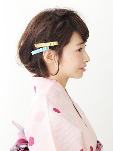 上質な生地で作ったようなリボンモチーフのピン。和服にも洋服にも使えるので便利。浴衣の中のワンポイントの色と合わせたり、浴衣地の色と反対色を選べばアクセントに。