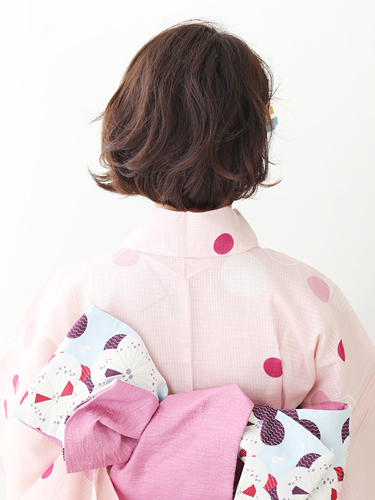 シンプルな浴衣には毛先の動きで華やかさをプラス