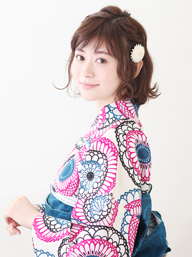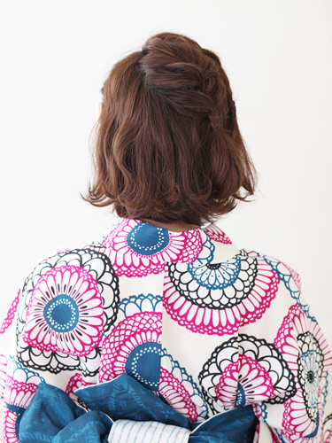 繊細な白い花弁が重なった菊モチーフのつまみ細工。中央に乗ったクリアストーンがキラキラと輝くピュアな印象のヘア小物は、どんなアレンジも邪魔しません。浴衣の花柄とモチーフをリンクさせて着こなしの鮮度をアップ。
