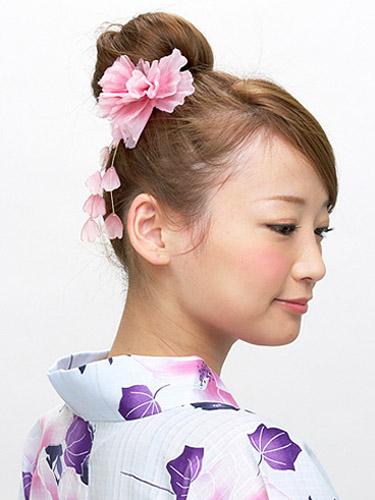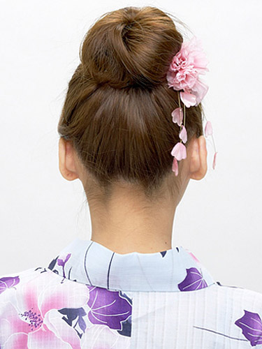 淡いピンクがキュートで、まるで本物の花のように可憐なかんざし。動くたびに揺れる花びらが、シンプルなヘアアレンジを、より一層引き立ててくれます。