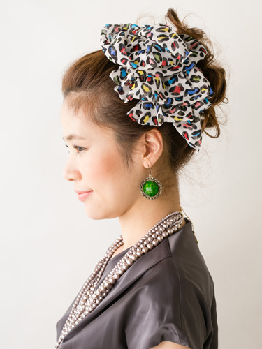 インパクト大の2重リボンバレッタ。ちょっと外したポップな感じが、オシャレ度を格上げします。あえてシックなワンピに合わせると好バランス。正面からリボンがのぞくように、やや前寄りにつけるのがオススメです。