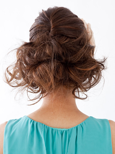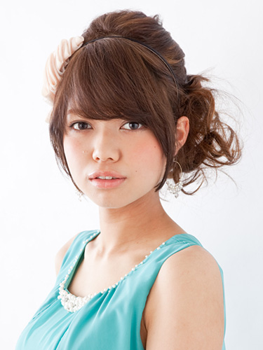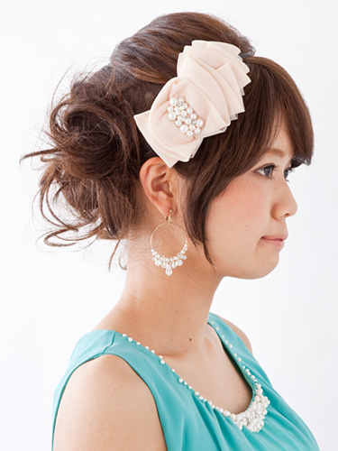 フォーマル過ぎないパーティにおススメなのが、少し質感をカジュアルダウンしたアレンジヘア。コームでしっかり逆毛を立てるのがポイントです。存在感のあるカチューシャ×ふわふわシニヨンで華やかさを演出しながら、適度にカジュアル感があるのでオシャレに厳しい女子目線も楽々クリアできちゃいます。