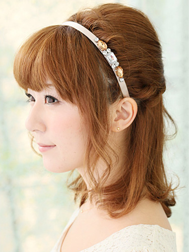 清楚なハーフアップをもっと可憐に見せたいなら、ピュアなホワイトをチョイスして。シンプルなキラキラビジューで女の子らしさも忘れずに。ドレスの色を選ばないので、1つ持っておくと便利なアイテムです。