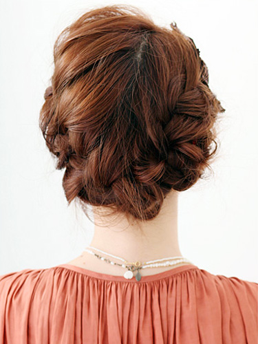 スタイルを程よくルーズに仕上げるために、前髪以外の部分はゆるめに編みます。最後にトップをつまんでもう一度崩すと、ふんわりとしたボリュームとトップに高さを出しやすくなります。