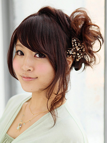 前髪から流れるようにたっぷり取った後れ毛は、スイートなイメージがアップするのでデート時にもオススメ。シニヨンの周りはかわいさを引き立てる三つ編みで囲んでアクセントに。ヘアアレンジ自体が華やかなので、ヘアアクセサリーは控えめなタイプを選ぶとバランスがキレイ。