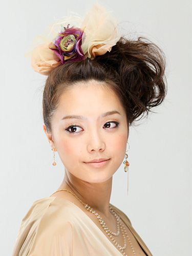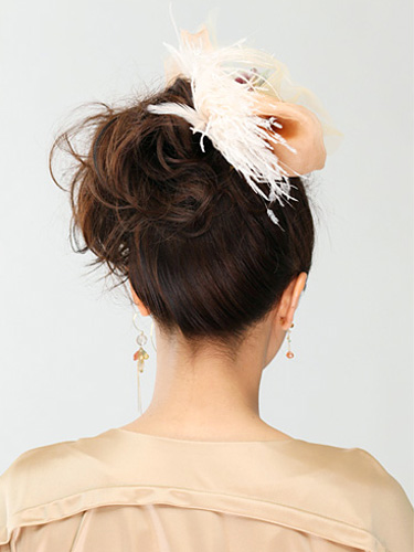 チュールを組み合わせて花びらに見立てたコームタイプ。チュールは華やかな印象になるのでパーティーにオススメ。これ1つで主役級のインパクトのあるヘアアレンジに。