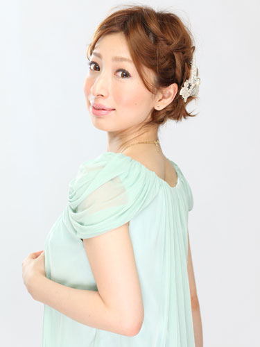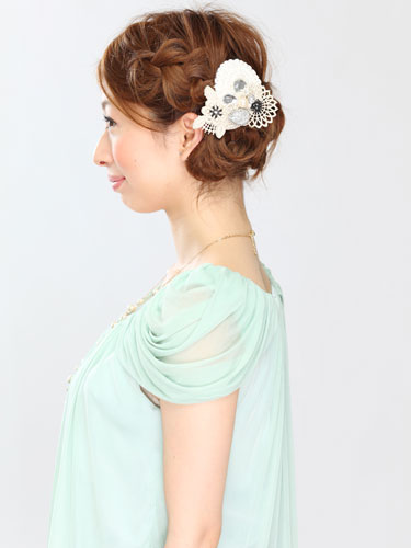 ふわっと軽やかな素材のドレスに合わせたいスイートなアレンジは、3本の編み込みをくるんと丸めただけ。程よいボリューム感がドレスの存在感とマッチします。ふわふわ編み込みで華やかさを演出しながら適度にカジュアル感もあるので、オシャレに厳しい女子からも好評間違いなしです。