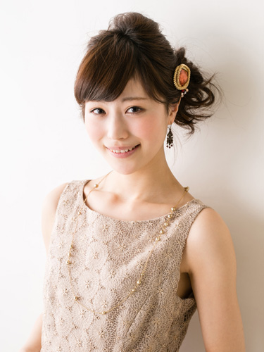 トップ、左右の3つに分けた毛束に、それぞれ逆毛を立てて、ふんわりエアリーに仕上げるスタイル。正面から見ると、シンプルなアップスタイルに見えますが、毛束を3つに分けることで、ポニーテール1本で作るよりも、ふんわり柔らかな印象に仕上がります。