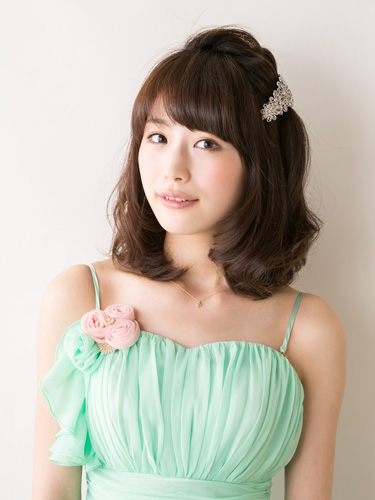 トップに作った編みこみを横に倒してニュアンスを出すスタイルです。ポンパドールに少しニュアンスがプラスされたイメージのアレンジなので、さりげないけどちょっと目新しい、よそ行きの印象に。ピンを使わないので、崩れにくいのもポイントです。