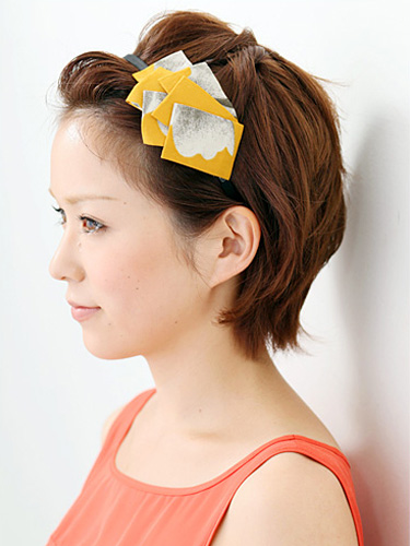 ちょっぴり渋めの辛子色が和テイストを感じるカチューシャは、ドレスと合わせるとお互いが引き立つアイテムです。シルバーが入っていてもベースの色がシックなので、デイリー使いにしてファッションのポイントに。