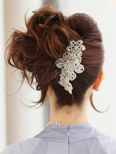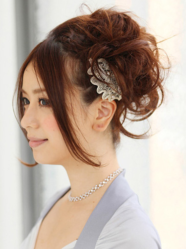 ヘアスタイルでも人気の高い“大人かわいい”雰囲気をアップスタイルにも取り入れました。流れるような前髪がエレガントさを、サイドにふわっとまとめたシニヨンがスイートさを演出してくれます。