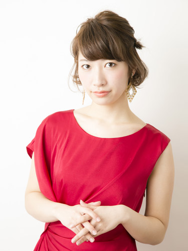 トップに高さを出してフォーマル感を持たせながら、毛先のハネでカジュアルダウン。ツイストで編んでいるサイドは髪が短いので、どんどんねじり足して立体感を出すのがコツ。ハーフアップで髪をまとめたときに、はらりと落ちるサイドの髪はそのままにして自然な動きを生かしましょう。