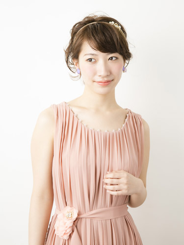 毛先の遊びでいろんなニュアンスが楽しめるのはショートならでは。ジェルワックスで毛束を作ってカジュアルな中にもきちんと感を演出。うねるような毛流れと毛先の動きでこなれ感を出しています。カチューシャにサイドの髪がかかっていることでラフな雰囲気が出るので、その絶妙なニュアンスも楽しんで。