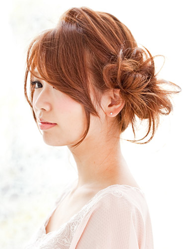 ローレイヤーベースに適度に軽さを出したバングを合わせて、キュートなまなざしを演出します。空気をはらんだようなカールに視線集中!手が込んでいる風に見えてスタイリングが簡単なのも嬉しいスタイルです。