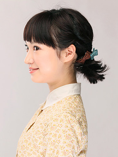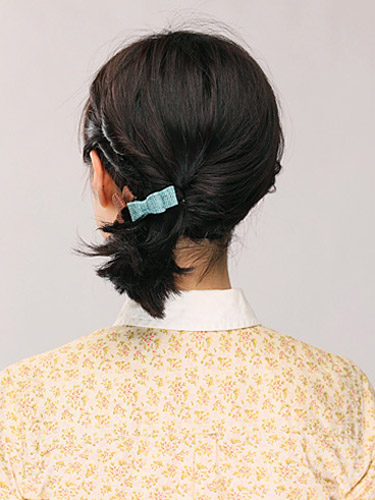 髪が短くてアレンジがしにくい人、髪が広がってしまう人にオススメの爽やか&キュートなヘアアレンジです。スッキリと結んでしまうのでネコ毛や剛毛などどんな髪質の人でもOK。落ち着いた印象になりがちなサイドの1つ結びも、顔周りをねじってかわいいリボンモチーフのバレッタで華やかさを加えます。