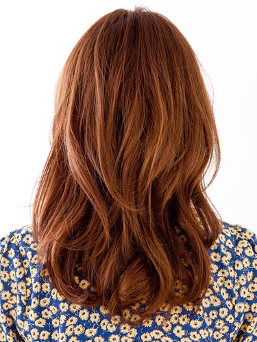 - ウエット時にトリートメントオイルを全体に塗布して、ツヤとまとまり感を出します。内巻きになるようにざっとハンドブローしたら、細めのロールブラシで毛先を丸めます。鎖骨周りの毛先は逆巻きで、自然にハネるようなカールを作って完成です。