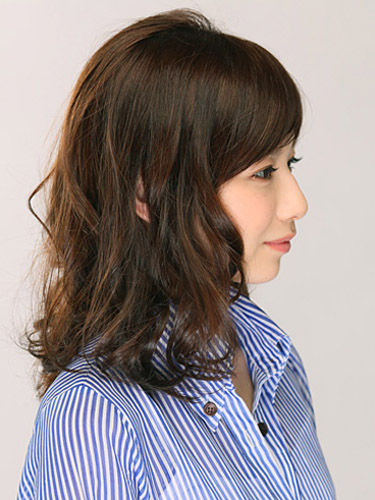 - ナチュラルに仕上げるため、あえてロールブラシは使わずハンドブローで丁寧にカールを作り、うねりやすい顔周りはストレートに伸ばします。ツヤのあるクリーム系ワックスでフィニッシュ。