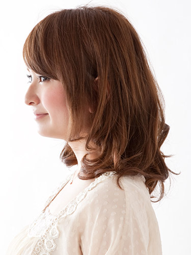 - 耳前は短めレイヤー、後ろはローレイヤーで軽さを出しているミディアムスタイル。