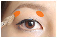 ブラウンで作った影に対して、今度は光の部分を作ります。眉下と目頭のアイホールのくぼみにハイライトカラーで立体感をつければメリハリEYEの完成です。