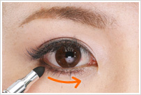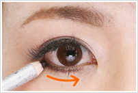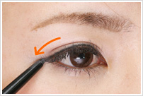 【STEP 1】 - 上まぶたの目尻に、アイラインをたれ目風に描き足す