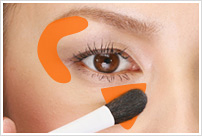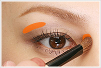 ハイライトパウダーをブラシに取り、目周りに「C」の字を意識して囲み、目の下にも三角系を描くように入れます。顔のメリハリが生まれて、ホリが深くみえる効果がUP!