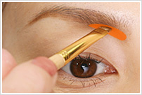 眉頭から黒目の上あたりまでの眉下部分を描き足します。眉尻側から眉頭にむかってブラシを用いてパウダーで毛を1本1本描く様に描いていきましょう。もとの眉より2~3mm下がるくらいがベスト。