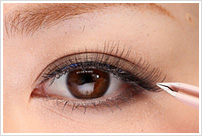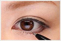 【STEP 1】 - 目を開けた状態で、目尻にアイラインを書き足す