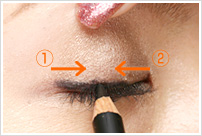 【STEP 1】 - 2回に分けて、ペンシルアイライナーでアイラインを引く