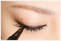 つけまつげのグルーが目の際に固まっていると目立ってしまうので、気になる部分はリキッドアイライナーで塗って隠します。これで、つけまつげがさらに自然に見えるようになりますよ!