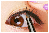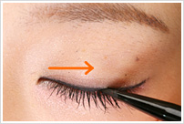 まつげの生え際を意識して、少しずつゆっくりラインを引くと描きやすくなります。一度にラインを引くのが難しい人は黒のペンシルアイライナーで薄くガイドラインを引いて、上からジェルライナーを使うと簡単ですよ!