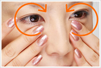 【STEP 1】 - マッサージで目周りの血行UP! クマやむくみをケア