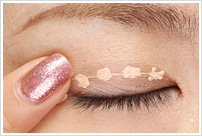 アイシャドウの発色を良くするために、目周りのくすみを整えます。少量のコンシーラーをまぶたの上に軽く乗せ薄く伸ばします。一度に大量を乗せるとムラになってしまうので、ちょんちょんと少しずつ乗せて。