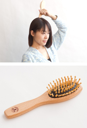ブラシは、ピンの間隔が広く先の丸いものがベター。ピンが木製や竹製のものなら、静電気も起きにくく、頭皮を傷つけにくいのでおすすめです。「百会」は、リラックス効果のあるツボ。息を吐きながら、ゆっくりと押しましょう。