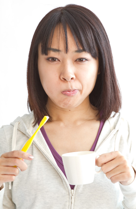 歯磨き後、うがいをする時に口の中から刺激を与えて、イヤなほうれい線に対抗! 左右の頬、上下の唇と歯茎の間、それぞれに水と空気をためて勢いよくすすぎます。上下左右3セットくらいを目標に。うがいストレッチで歯磨き中にほうれい線を消す