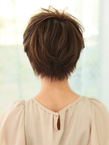 ミニマムなマッシュベース。襟足にくびれを出してすっきりとしたシルエットに仕上げます。長めに残したトップの毛束の浮遊感が、スタイル全体に躍動感をプラス。アクティブでいながらスウィートさを効かせました。