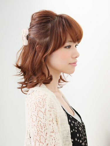 定番ハーフアップにアクセントを加えるテクニックです。束ねた上部の隙間に毛束を下から通すと、複雑なねじりを加えたように仕上がります。とっても簡単なのに上級者アレンジに見せてくれるので、ぶきっちょさんにおススメ!