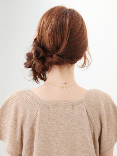 顔周りに残した後れ毛が気になる輪郭をしっかりカバー&ねじっているように見えて、実は毛束をひっくり返しただけのワザ有りヘアアレンジです。無造作な柔らか感に思わずグッとくる男性が続出!