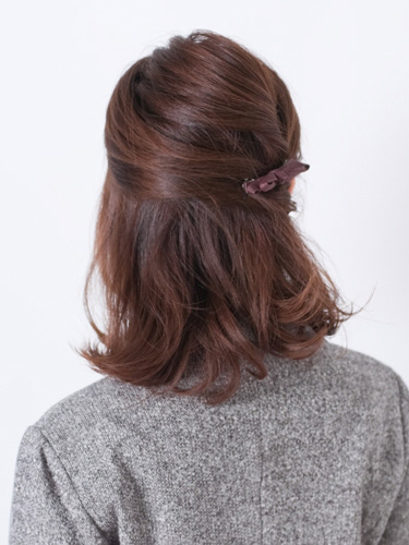 ねじって留めるだけで出来る簡単ヘアアレンジです。重たく見えがちなミディアムスタイルですが、片サイドを出すだけですっきり上品な印象に魅せます。