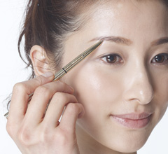 「今のトレンドは、K-POPの女性歌手のような、ボリュームはあるけど柔らかい印象の"韓流眉"。韓流眉のポイントは、眉下のラインをアーチ型にせず、フラットにすること。ちょっとしたことですが、印象ががらりと変わりますよ」
