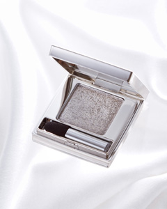 純銀入りでメタリックな質感のアイシャドウ。パーティーにふさわしいゴージャスな輝き。肌への密着度も高く、煌きが長時間持続。パレットには鏡とチップがついているので、メイク直し時も便利。