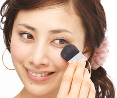 肌にのせた途端、パウダーがすっと消え、光沢感&透明感があふれ出すパーリィーなプレストパウダー。メイク直しステップでは、左上のパール入りパウダーを使用。メイク仕立ての、いきいきとした印象に早変わり。
