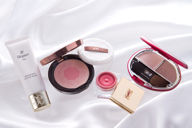 肌からにじみでるような血色感の、グラデーションチーク。パフに色をとり、そのまま頬にのせるだけで、プロ級の自然な仕上がりに。優しい表情を作り出すソフトピンク。