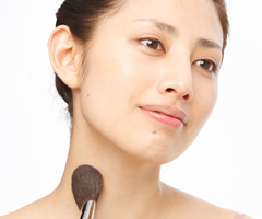 首やデコルテにも輝きパウダーをオン - 繊細な輝き感のあるパウダーを顔にのせ、華やかさを演出。顔だけでは浮いてしまうので、首やデコルテにものせるのがポイント。