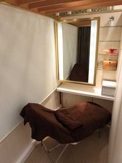 こちらの新店舗の最大のポイントは、よーじや初の試みとなるエステキャビンの併設。よーじやのケア商品を贅沢に使ったトリートメントが、お買い上げポイントに応じて受けられます。フェイシャル&デコルテを中心に、ヘッド、ハンドにいたるまで“肌へのやさしさ”を第一に考えたサービスと、京都ブランドならではの“おもてなし”の心が伝わる、きめ細かいサービスです。